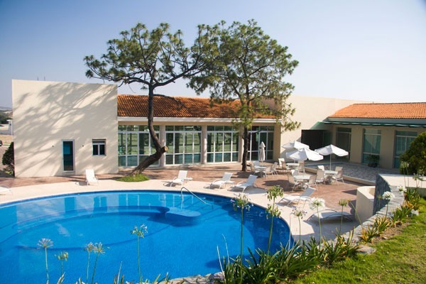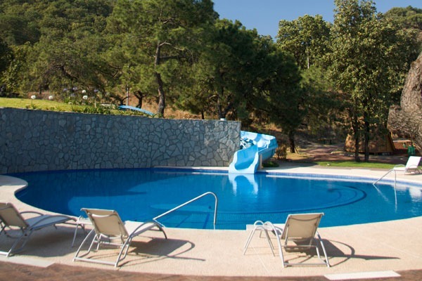 Alberca climatizada con tobogán para momentos de diversión.